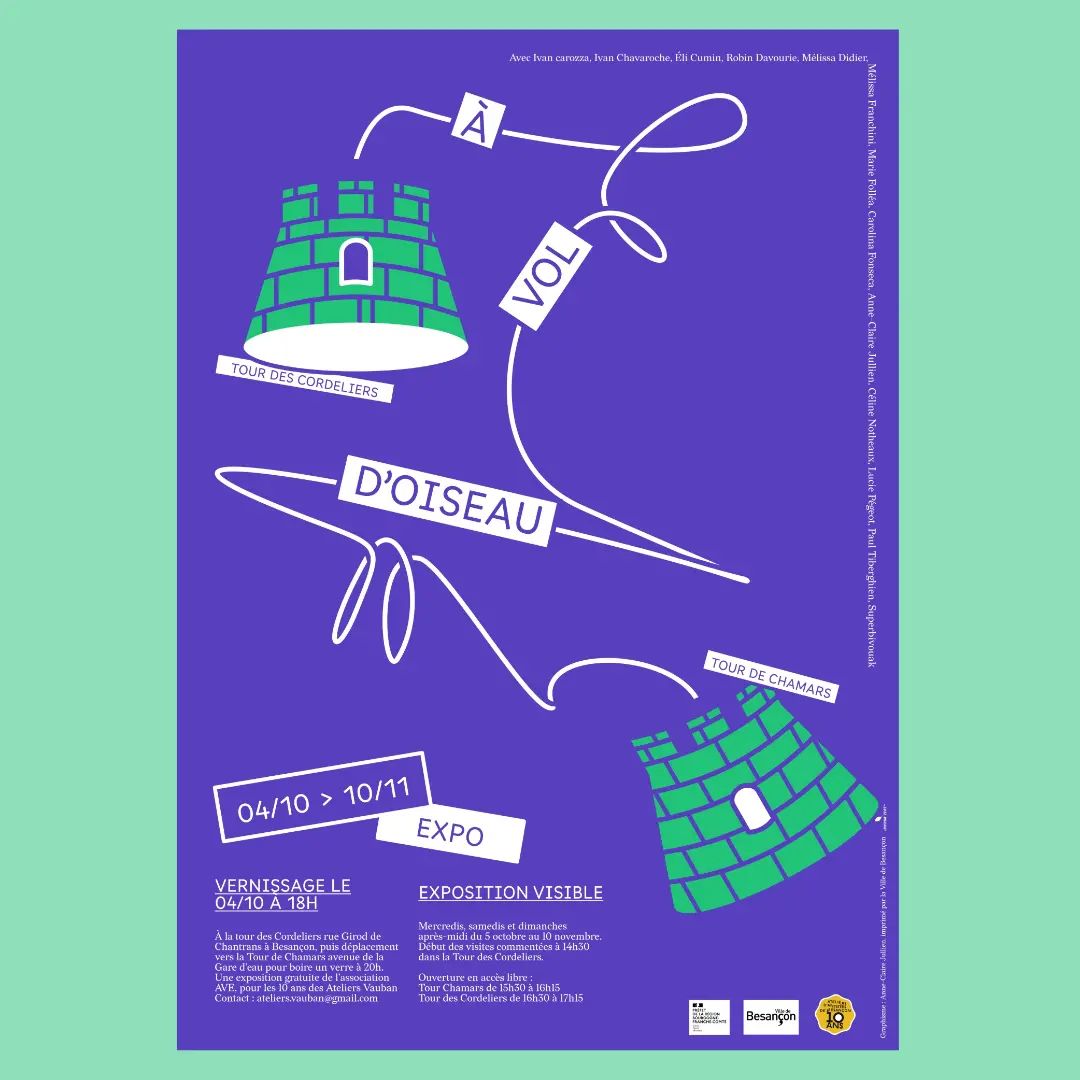 Dans le cadre des 10 ans des ateliers d’artiste de la ville de Besançon, l’association AVE investira les tours bastionnées de Chamars et des Cordeliers avec une exposition collective qui donnera à voir des oeuvres d’Ivan Carozza, Ivan Chavaroche, Eli Cumin, Robin Davourie, Mélissa Didier, Mélissa Franchini, Marie Follea, Carolina Fonseca, Anne-Claire Jullien, Céline Notheaux, Lucie Pégeot, Superbivouak, Paul Tiberghien.