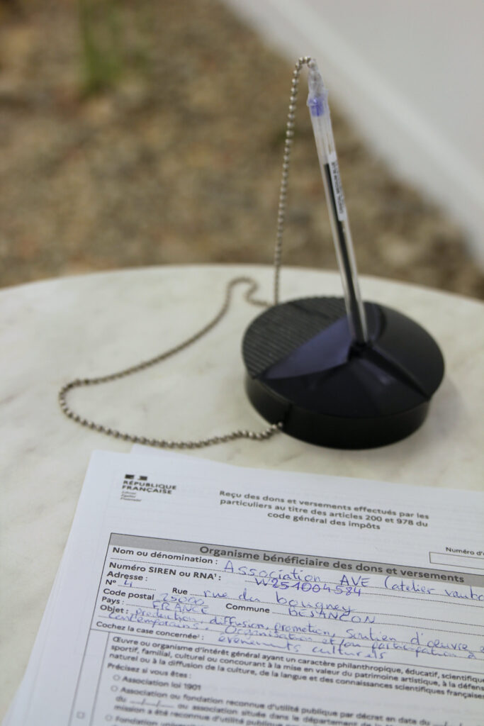 « Jacuzzi à vendre est une exposition collective, restitution d’une résidence de 5 jours qui avait pour ambition de réfléchir à la condition de l’artiste dans son écosystème, des financeur.euse.s aux spectateur.ice.s, de la friche militaro-immobilière de l’atelier à la fiche d’imposition des collectionneur.euse.s. » Texte : Céline Notheaux